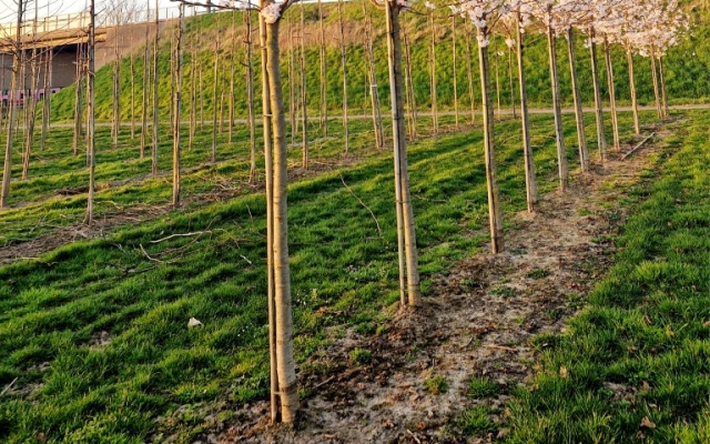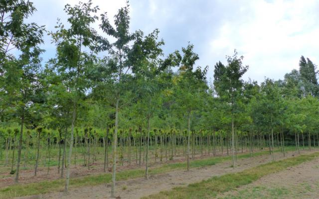 Een assortiment van ongeveer 150 verschillende soorten wordt in hoogstammige of geveerde vorm gekweekt.